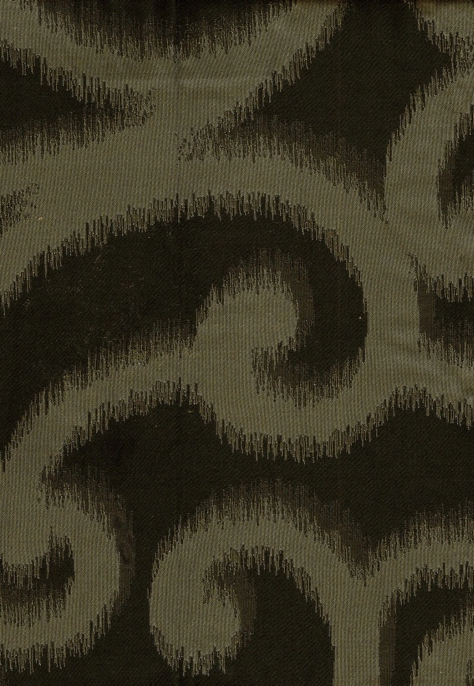 Dekorační a pevná látka, která se může obracet a měnit směry vzoru. Jedna strana je tmavá, lesklá a druhá světlá s vetkaným vzorem.