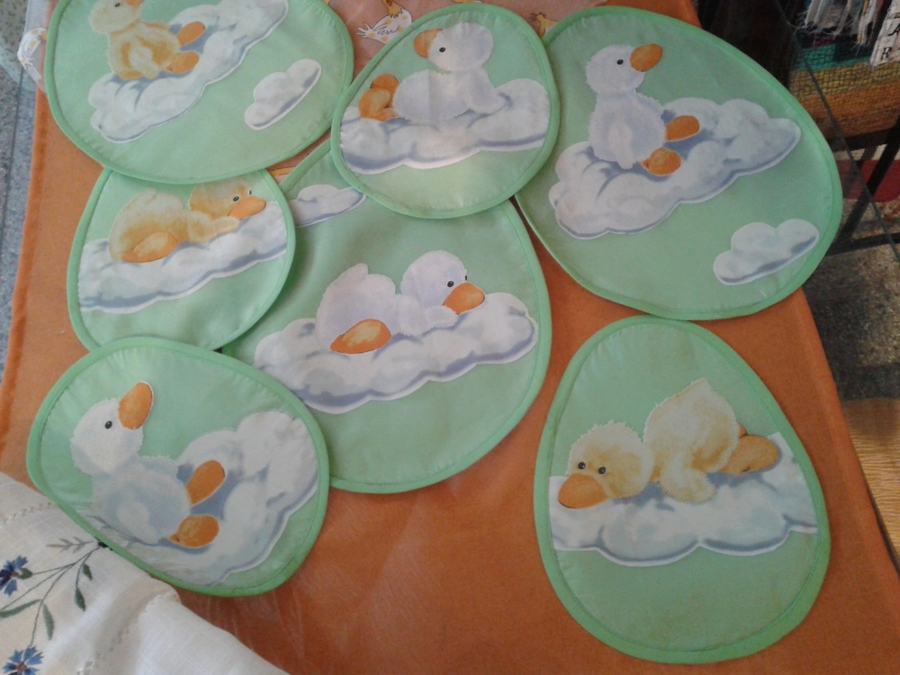 Originální prostírání ve tvaru velikonočních vajíček je zhotoveno ze dvou kusů látek a olemováno šikmým proužkem.
