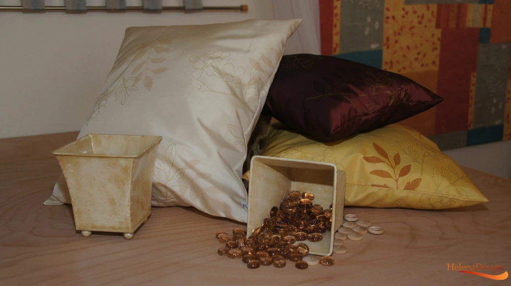 Polštář imitující svěžest a hravost, na kterém jemně a elegantně vzkvétají moderní povrchové úpravy látky.