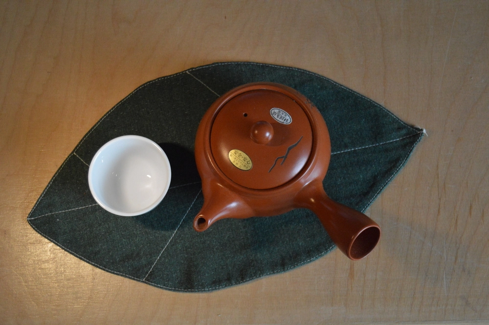 Podložky pod šálky, misky na čaj a talířky ve tvaru čajového listu.