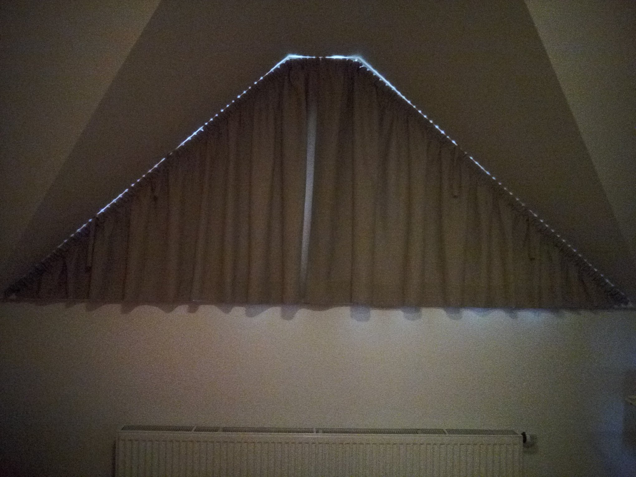 Jak je vidět na obrázku, zatemňovací závěsy jsou funkční, světlo neproniká přes látku /nejsou vidět obrysy okna/, ale okolo.