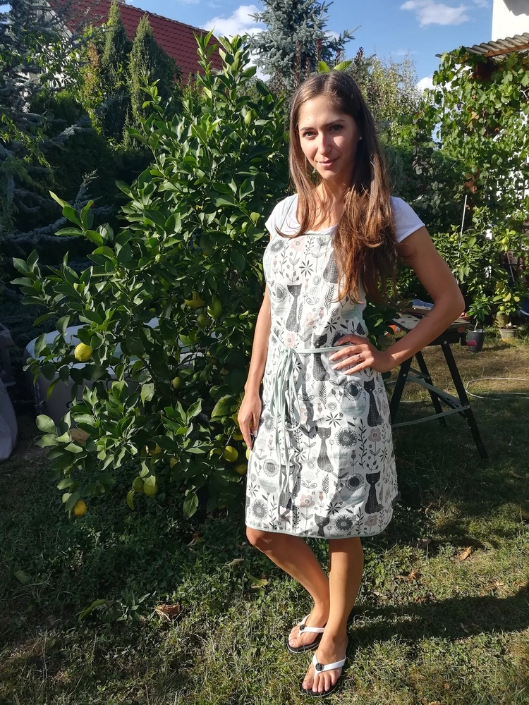 Slušivá zástěra na vaření, na zahradnické práce a další kutilské práce. O to, že zástěra bude perfektně sedět, se postarají stylové stuhy - úvazy, které jsou nastavitelné. Zepředu je prostorná kapsa kam se vleze spousta maličkostí, nářadí nebo rukavice či potřeby na vaření. Materiál je velmi pevná bavlna se vzorem květů, koček. Zástěra je obšitá zelenkavou lemovkou.