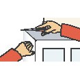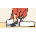 ![]() | Tapety položte rubovou stranou na rovný stůl, jednu hranu srovnejte s hranou stolu a lepidlo na tapetu roztírejte od středu rovnoměrně do všech stran. Tapetu poté poskládejte, aby se důkladně nasákla. |