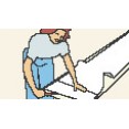 ![]() | Složitější jsou okenní výklenky. Tapetu nastřihneme ve výši parapetu a horní hrany okna, a nastřiženou část přehneme do výklenku. Přesahující tapetu odstřihneme. |