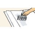 ![]() | Přečnívající části tapety přitiskněte pevně k okrajům, poté lehce povolte a pak podél okraje zastřihněte. Pro docílení roviny můžete použít pravítko na hrany nebo napnutý provázek. |