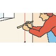 ![]() | Pomocí olovnice si vyměřte a tužkou si na stěnu nakreslete výchozí svislou čáru. Ta musí být přesná, proto rozhodně použijte pravítko. |