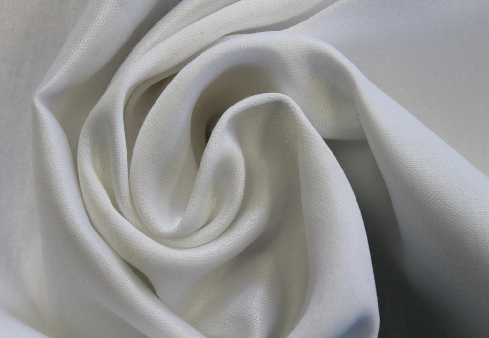 Látka v úvodní fotce - základní specifikace Polycotton - Satén Beig (barva bílá a béžová, líc saténově lesklý, rub matný - bavlna)